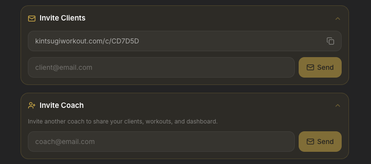 Share your unique coach link or send email invitations to onboard clients.