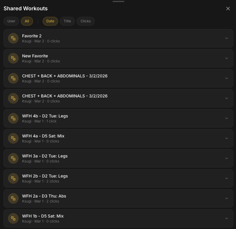 Build and manage your shared workout collection. Sort, filter, and assign at scale.