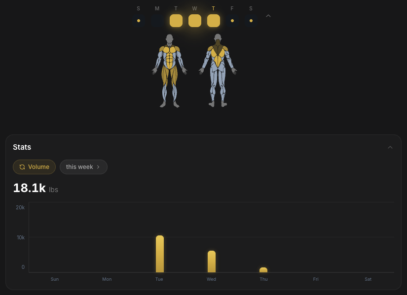 Everything: workout sessions, exercise performance, training heatmaps, weekly schedules, favorites, workout history, and exportable data.